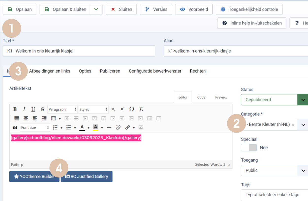 Klik op de knop RC Justified Gallery (4) en selecteer de map waar je de foto's net hebt opgeladen.