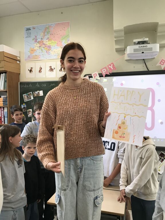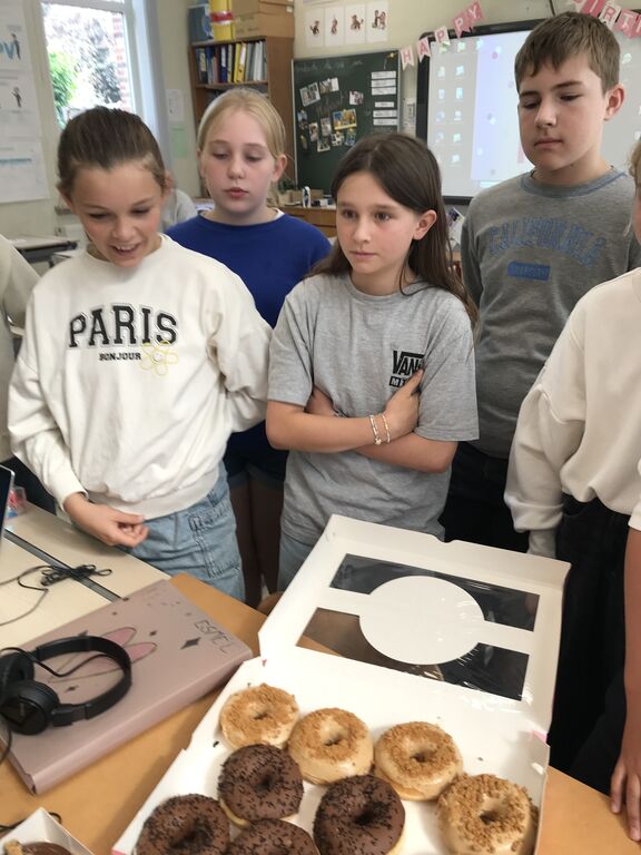 Hoera, Stephanie is 13 jaar!We vierden haar verjaardag in de klas, we speelden tikkertje zombie rond de kerk.En we konden smullen van heerlijke donuts!Stephanie koos het cadeautje van Esmée!